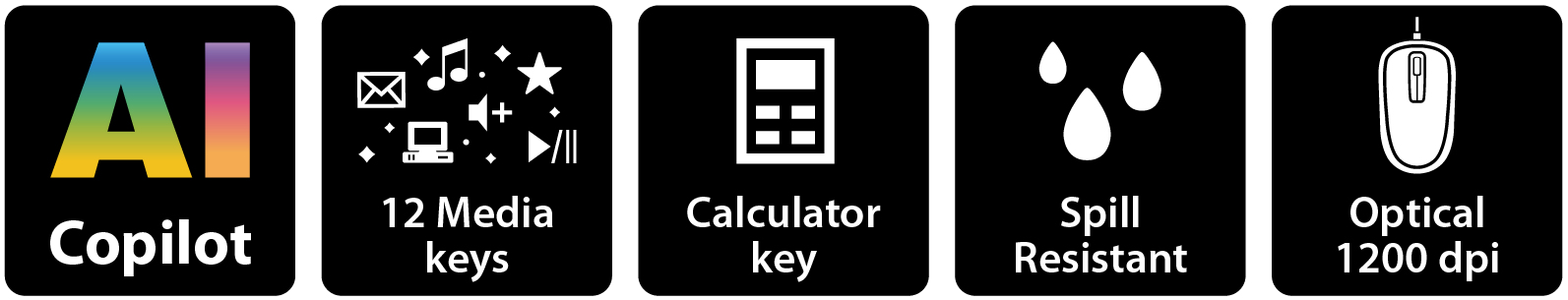 • Combo de teclado y ratón con cable
