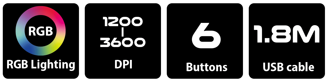 • Iluminación respiratoria con 7 colores LED (presione DPI + botón delante ó atras para cambiar el tipo de iluminación LED.